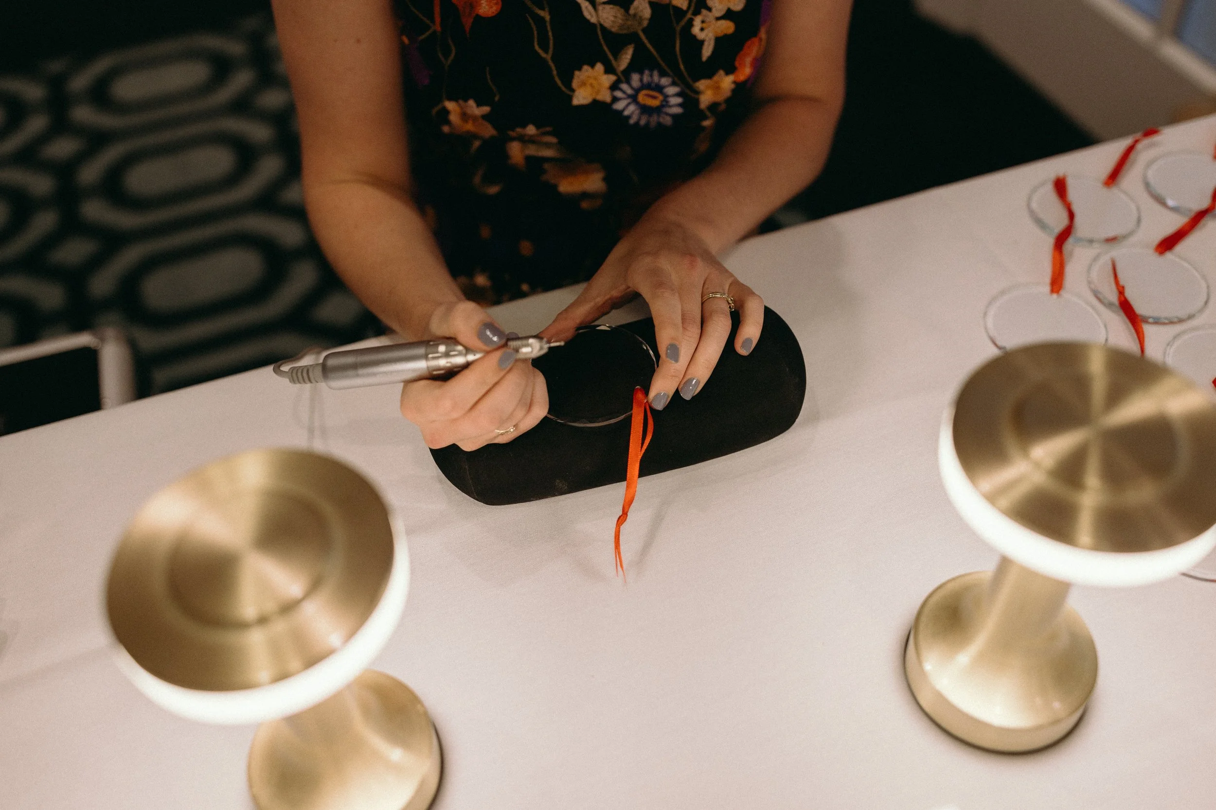 “I've had the pleasure of working with Rachel twice now, for my own wedding and for a charity gala. For the charity gala - Rachel was kind enough to custom engrave ornaments for our guests live at the event. She showed up on time and ready to go with all the materials that she needed. Our guests loved the personal touch that the ornaments added to the event!”